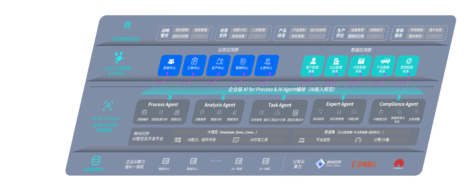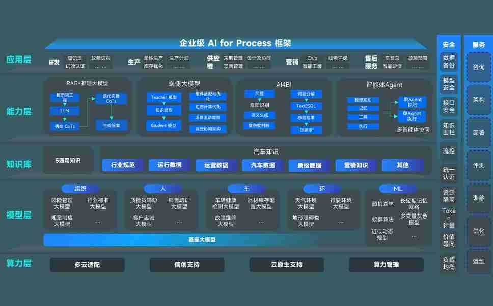 玖鼎问学智车解决方案是一套基于AI技术的汽车行业智能化系统,,,覆盖从底层算力到顶层AI应用的全栈方案。。。方案由算力层、、、、模型层和应用层组成:算力层,,方案支持多种一体机配置,,具备云端灵活部署、、、、多云适配以及动态优化计算资源的能力;模型层,,玖鼎问学平台版提供了企业级AI应用一站式构建与管理平台,,,支持基于后训练强化技术的汽车企业专属模型的训练、、、、评测和运营;应用层,,玖鼎问学DeepSeek版提供包括超级员工、、、、智能招采、、、、智能营销、、智能客服、、、、AI for BI等一系列解决方案,,,可助力汽车行业实现数字化转型,,让管理更智能、、响应更敏捷。。。
